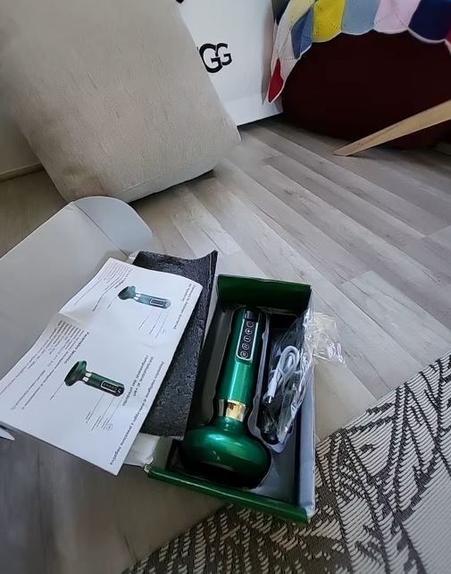 Using the device is simple. First, apply an essential oil to your skin and use the protective pads to keep oil from entering the device. Turn it on and apply it to your skin; the suction will begin automatically. You can then adjust the intensity and activate the infrared function (optional) using the controls. To release the suction, simply press the designated button.